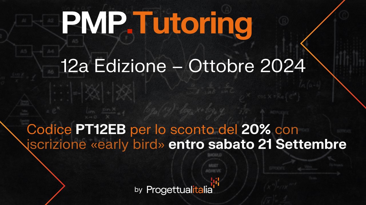 La 12a edizione di PMP.Tutoring ha lo scopo di prepararti all'esame PMP® impostando i contenuti formativi sui tre domini generali previsti dal PMI®