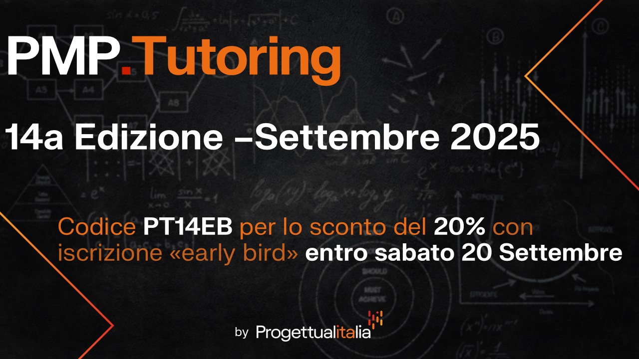 La 14a edizione di PMP.Tutoring ha lo scopo di prepararti all'esame PMP® impostando i contenuti formativi sui tre domini generali previsti dal PMI®