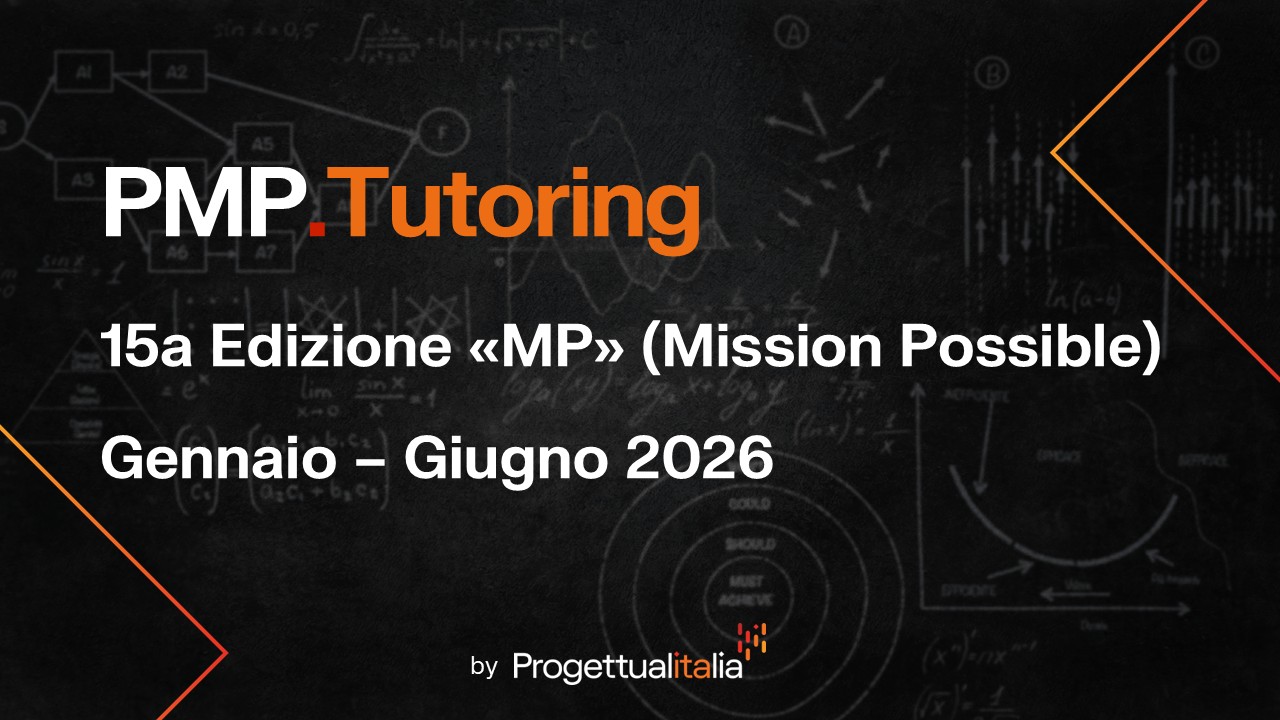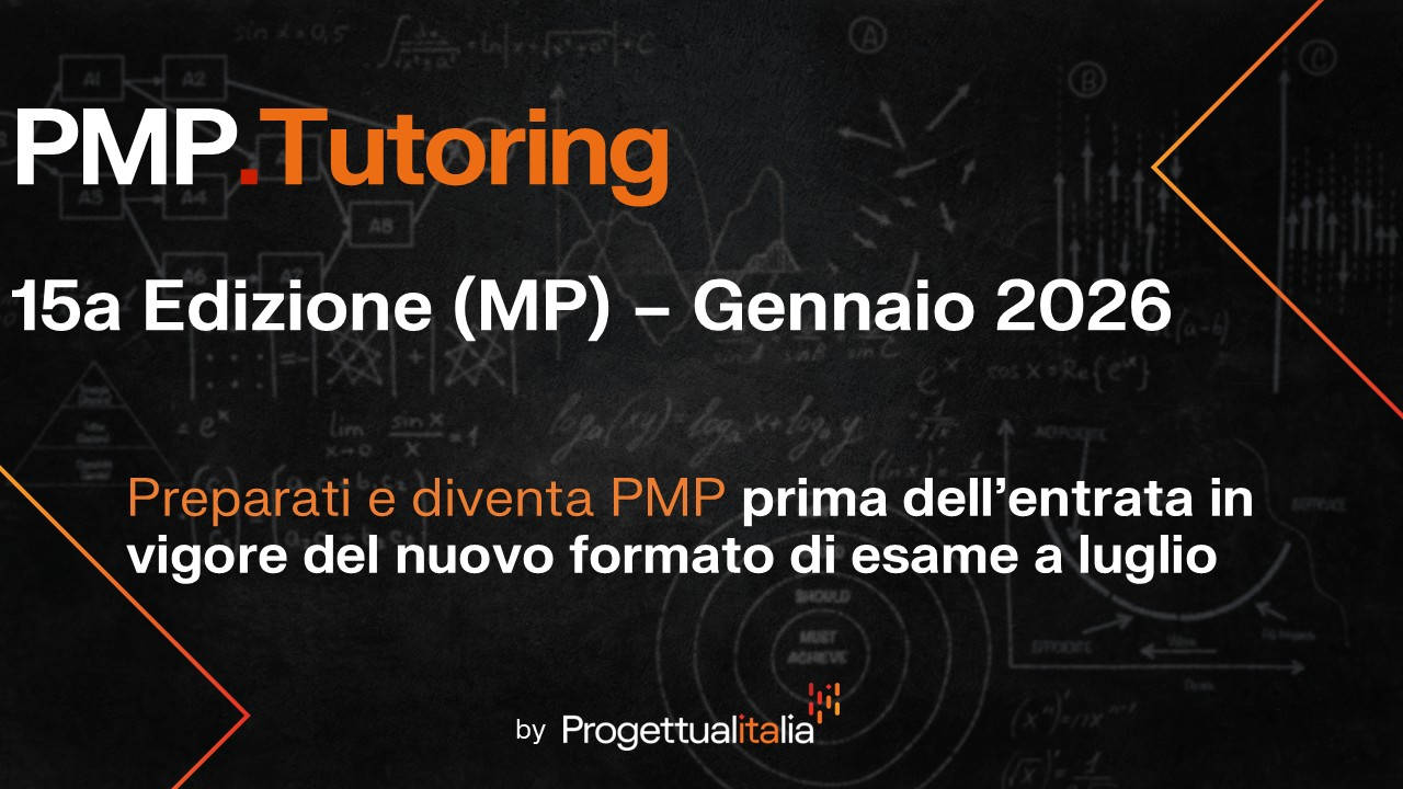 La 15a edizione di PMP.Tutoring ha lo scopo di prepararti all'esame PMP® secondo la formula e i contenuti validi fino al 30 giugno 2025, classificati sui tre domini generali previsti dal PMI®